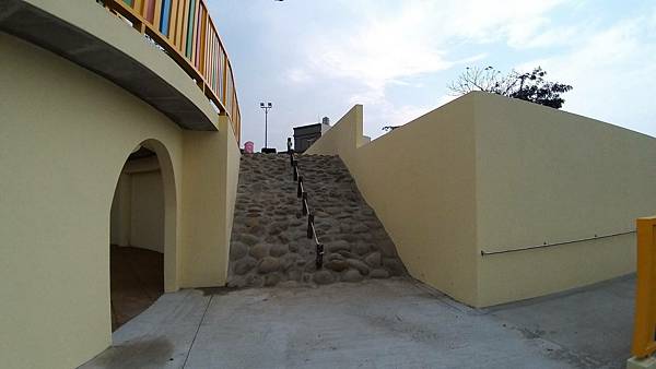 第二層有座粉紅色的磨石子滑梯 ,也可溜到第一層
