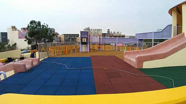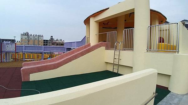 第三層的另一側 也是紅色磨石子滑梯 從上面溜到第一層